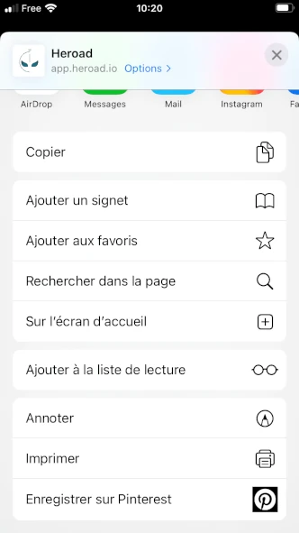 Seul le navigateur Safari permet d'installer l'application Heroad.