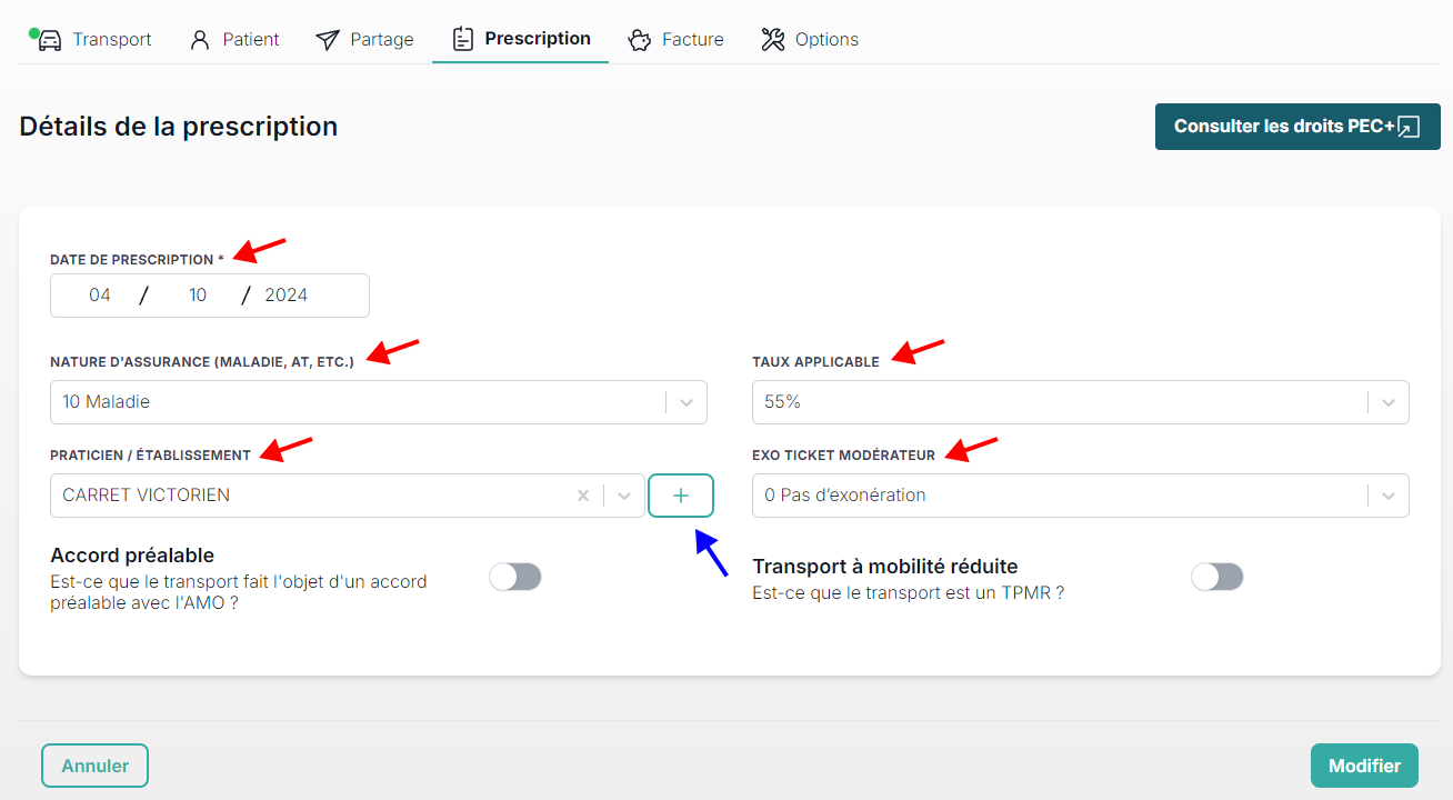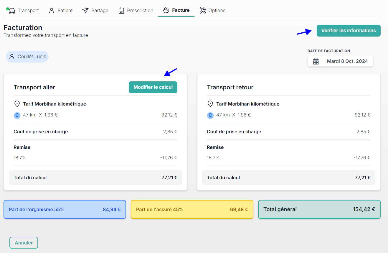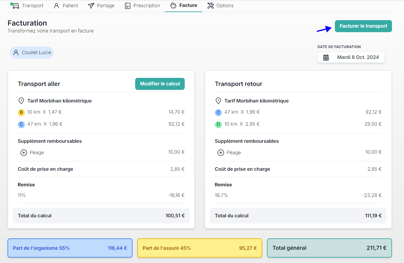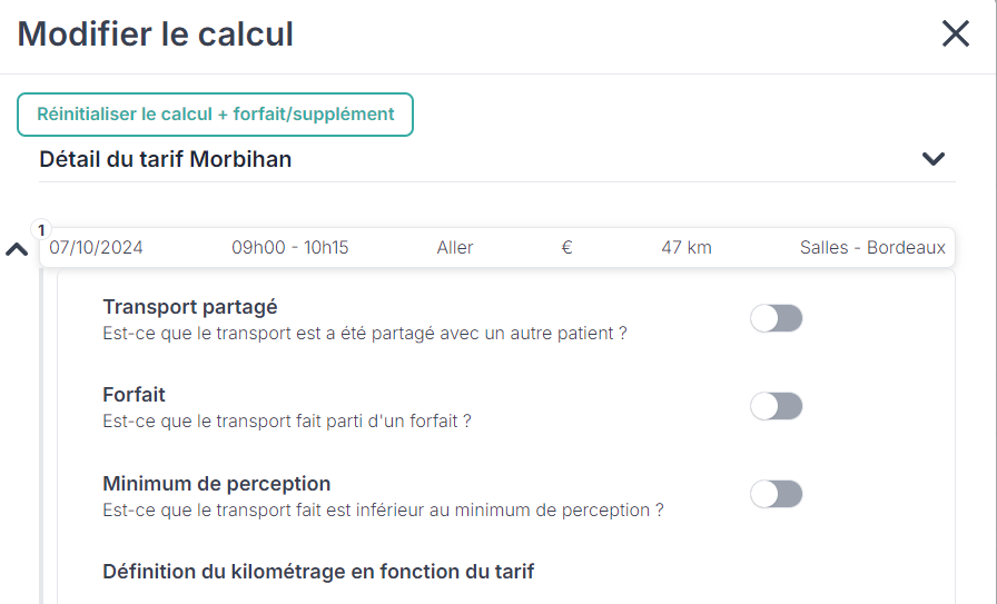 Transport partagé : Renseigner le nombre de patients ainsi que l'abattement