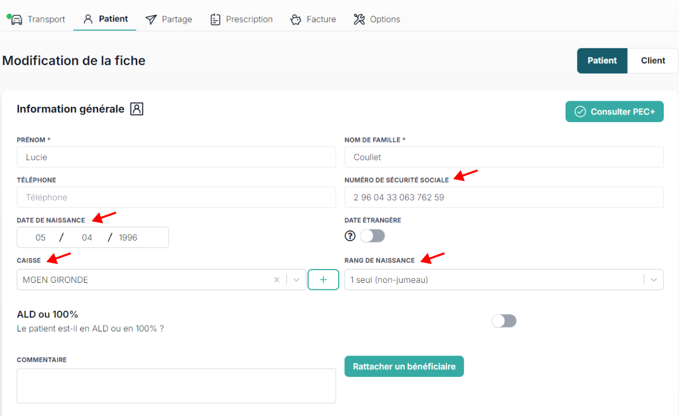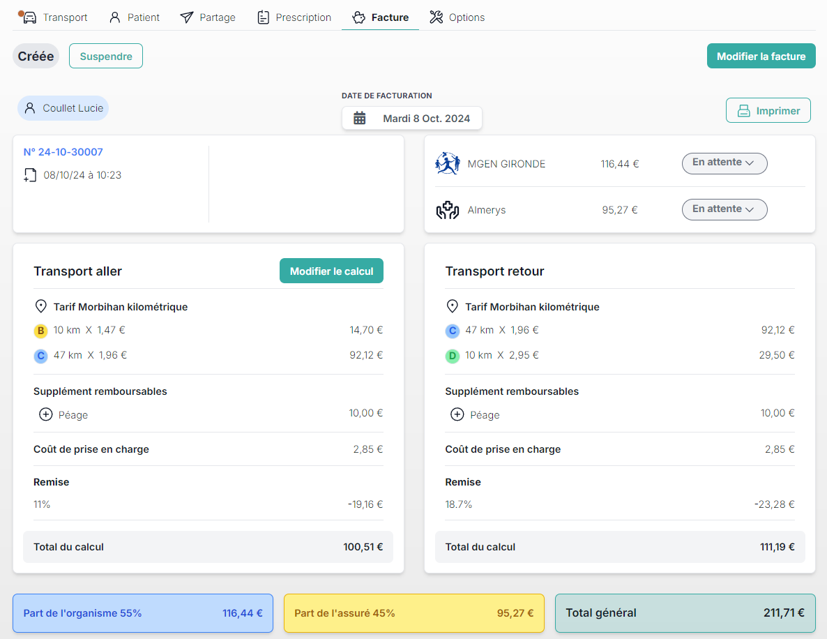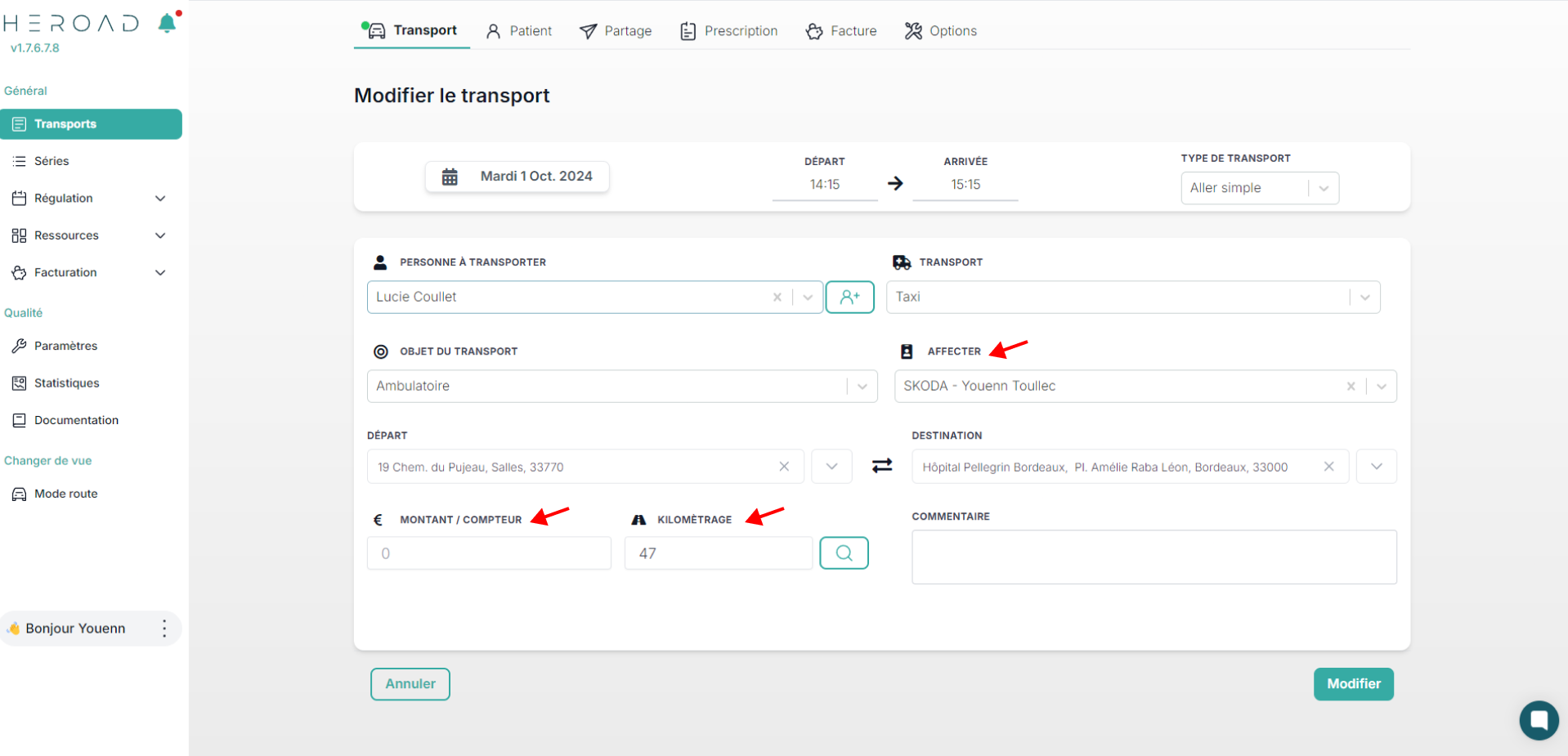 Transport partagé : Renseigner le nombre de patients ainsi que l'abattement