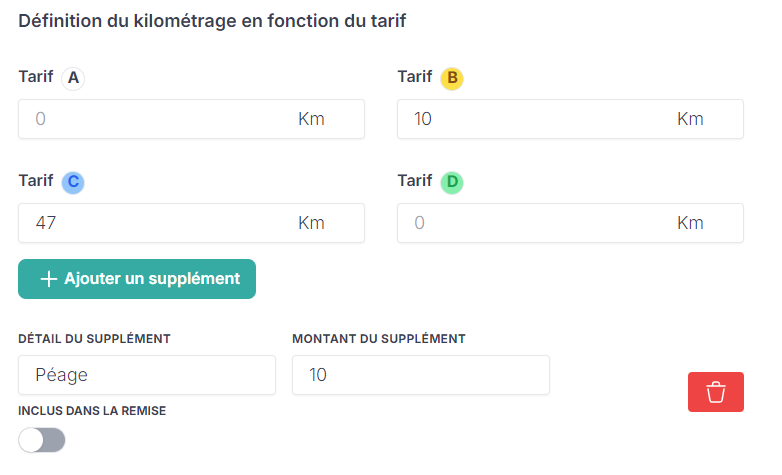 Renseignez les kilométrages ou le montant au compteur (dans le cadre d'une facturation horokilométrique).